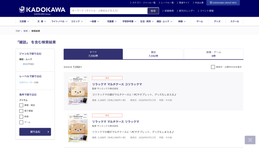 KADOKAWAの付録付き雑誌は、トレンド性と実用性をバランスよく取り入れている点が特徴です。特にキャラクターコラボや人気ブランドとの企画が多く、「見た目の可愛さ」と「使いやすさ」を両立しています。